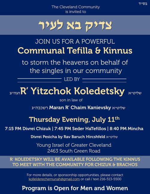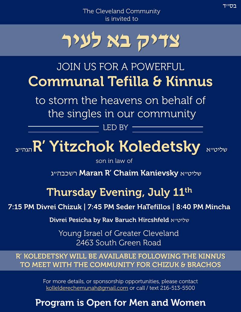 Community Wide Tefilla Event with HaRav Koledetsky, Son in Law of HaRav Chaim Kanievsky Shlita