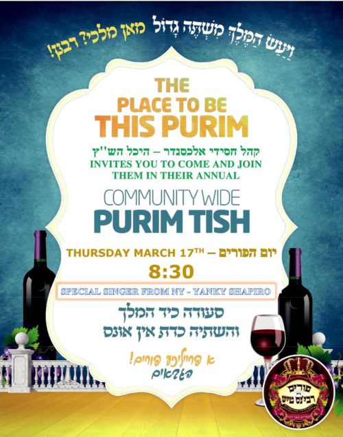 Community Wide Tish this Purim at K’Hal Chasidei Aleksender