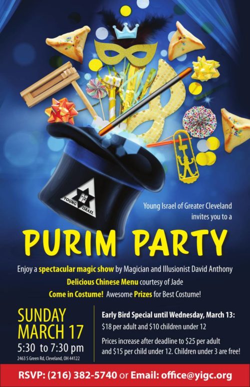 Celebrate Purim at Hebrew Storytime, a Hebrew and English story hour, at the Beachwood Branch of the Cuyahoga County Public Library on Wednesday, March 6, 2019, at 4:00 pm.