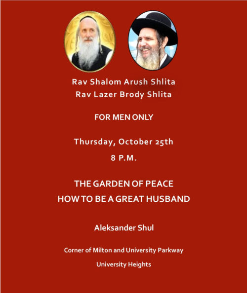 Shabbos Project Events with Rabbi Shalom Arush and Rabbi Lazer Brody – October 26-28
