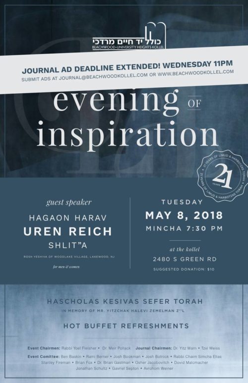 Place ads at www.beachwoodkollel.com or email journal@beachwoodkollel.com.