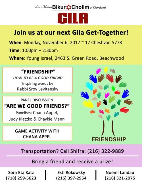 Attention All Bubbies, Savtas, Grandmas, Omas and Friends! Join Bikur Cholim at our next GILA event.