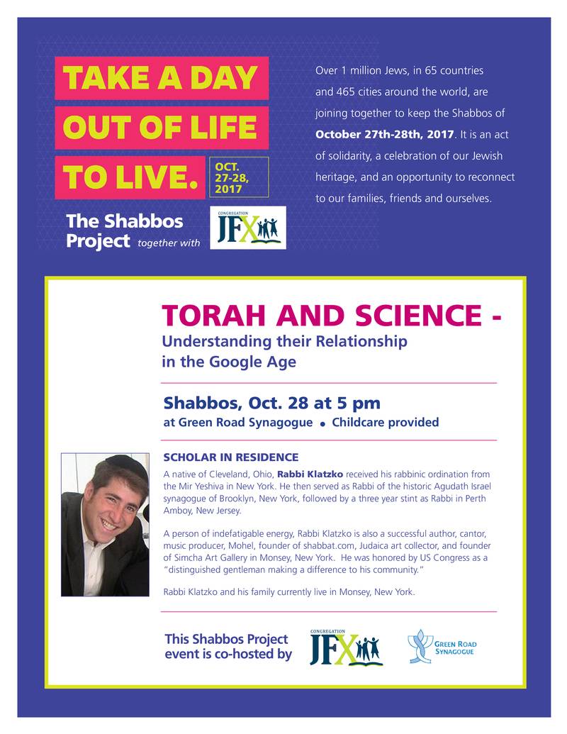 This Shabbos – “Torah and Science – Understanding their Relationship in the Google Age”