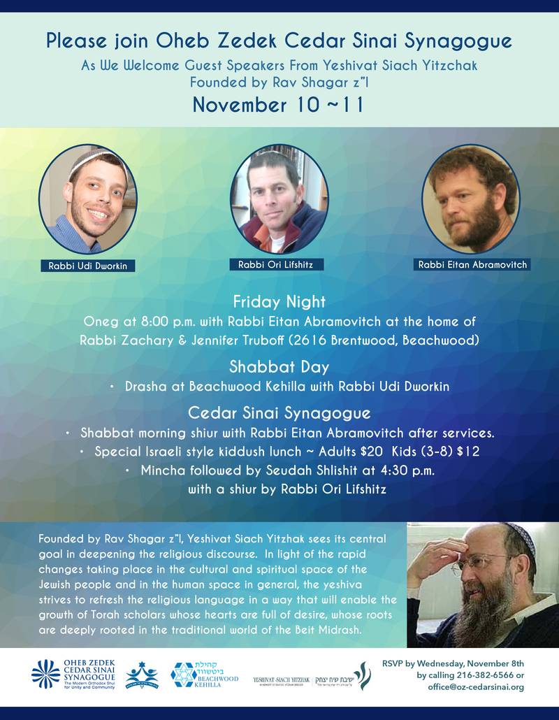 Shabbat with Yeshivat Siach Yitzchak at Cedar Sinai Synagogue – November 10-11
