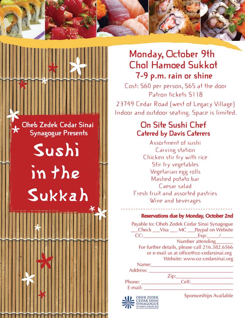 Oheb Zedek Cedar Sinai Synagogue Presents “Sushi in the Sukkah”, Oct. 9th