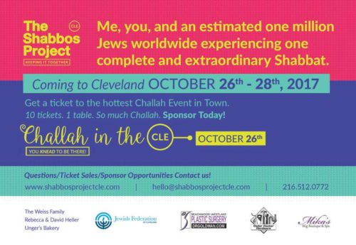 Looking for volunteers. Email hello@shabbosprojectcle.com to help with registration, usher, set up day of event OR packing ingredients the sunday before.