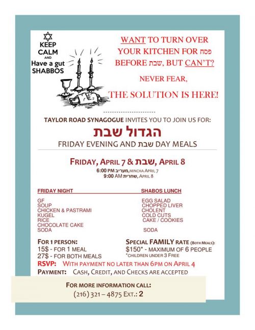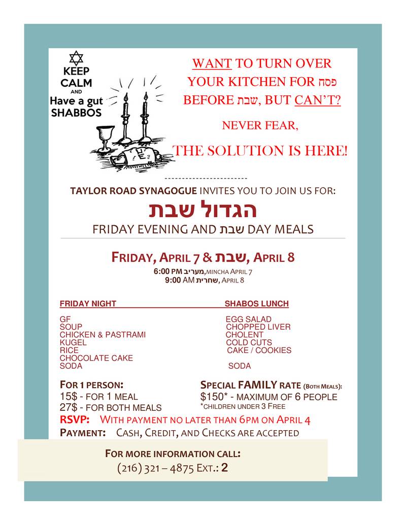 Experience Friday Night and Shabbos Meals at Taylor Road Synagogue this Shabbos