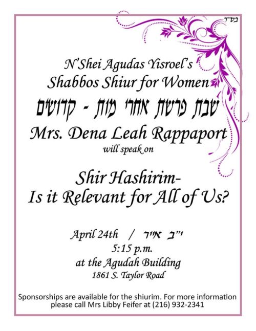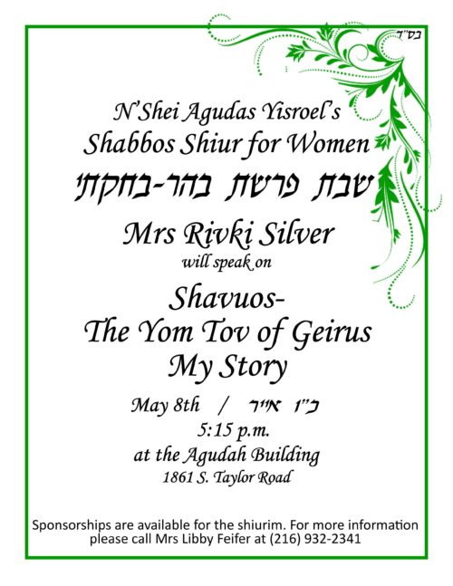 For more information, please contact the Rosh Chaburah, Rabbi Yaakov Bienstock at (216) 533-9400