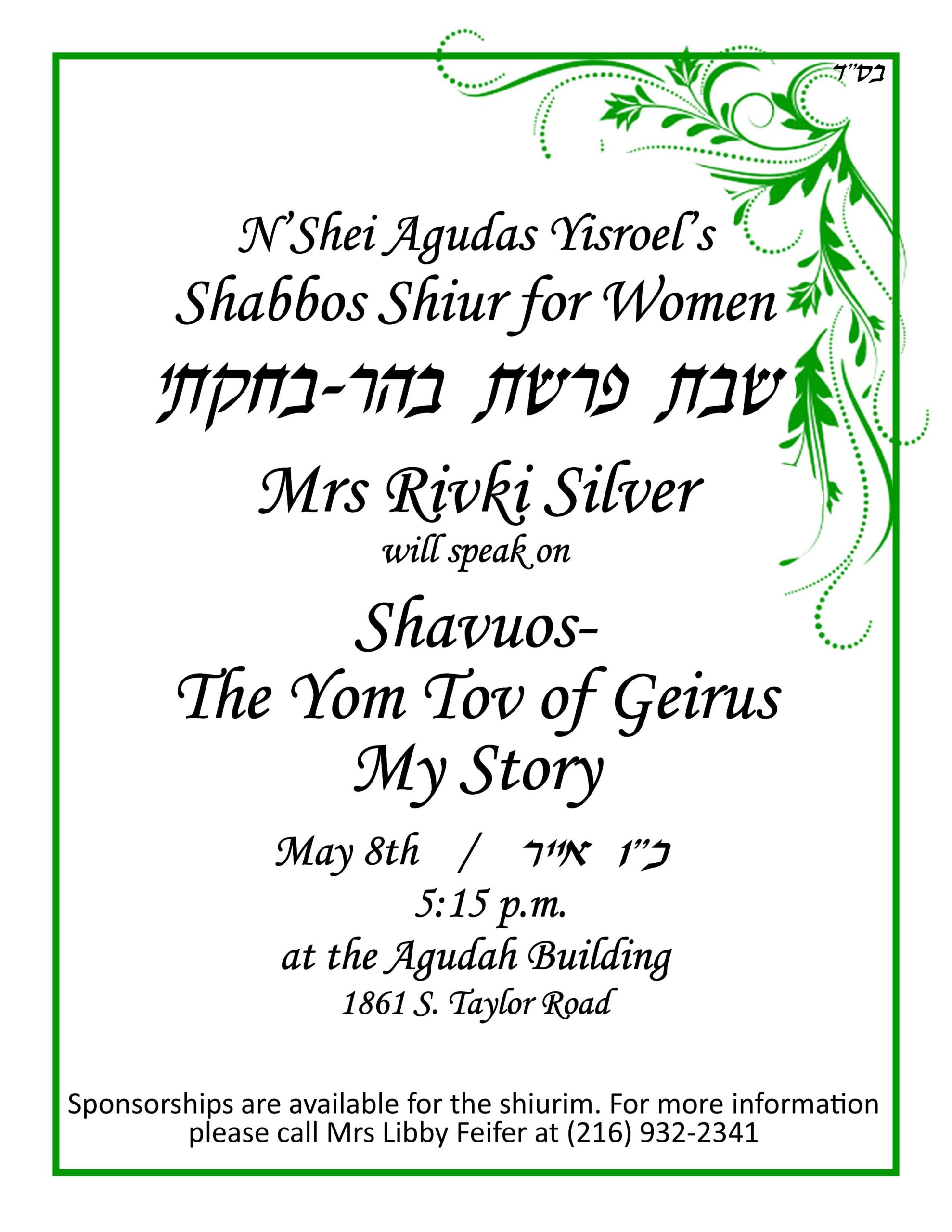 For more information, please contact the Rosh Chaburah, Rabbi Yaakov Bienstock at (216) 533-9400