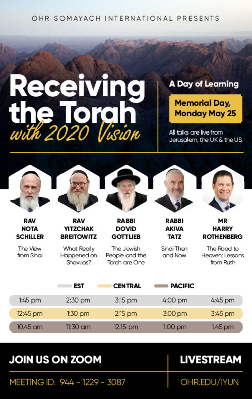 This Memorial Day – Monday May 25 – Ohr Somayach Presents a Day of Learning – Live Torah Event