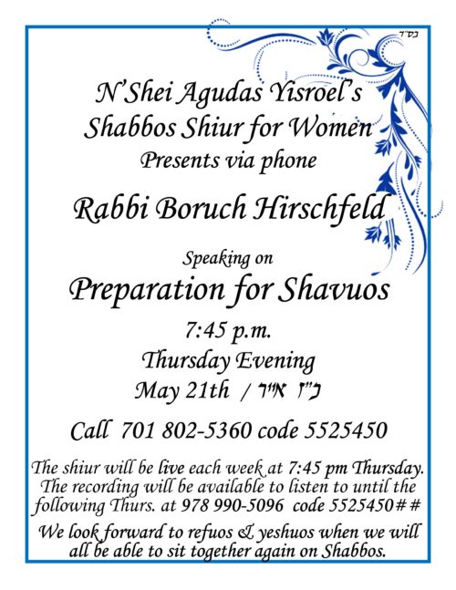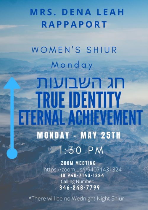 Women’s Shiur with Mrs. Dena Leah Rappaport, Monday