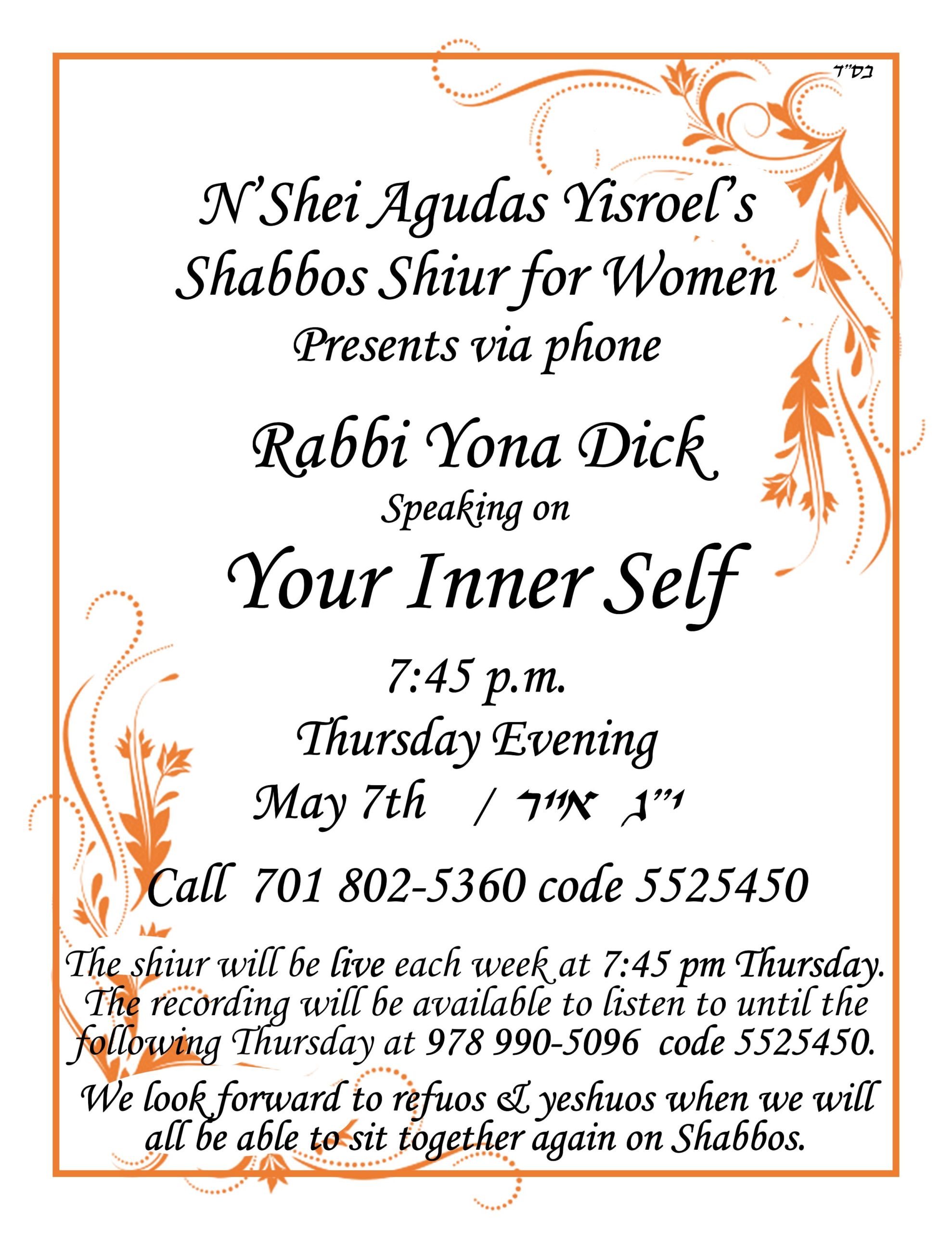 Tomorrow night, Mon., Mar. 23 at 8:30 pm EST there will be a teleconference given by HaRav Ahron Levitansky, shlita to discuss the current situation with insights and divrei chizuk.