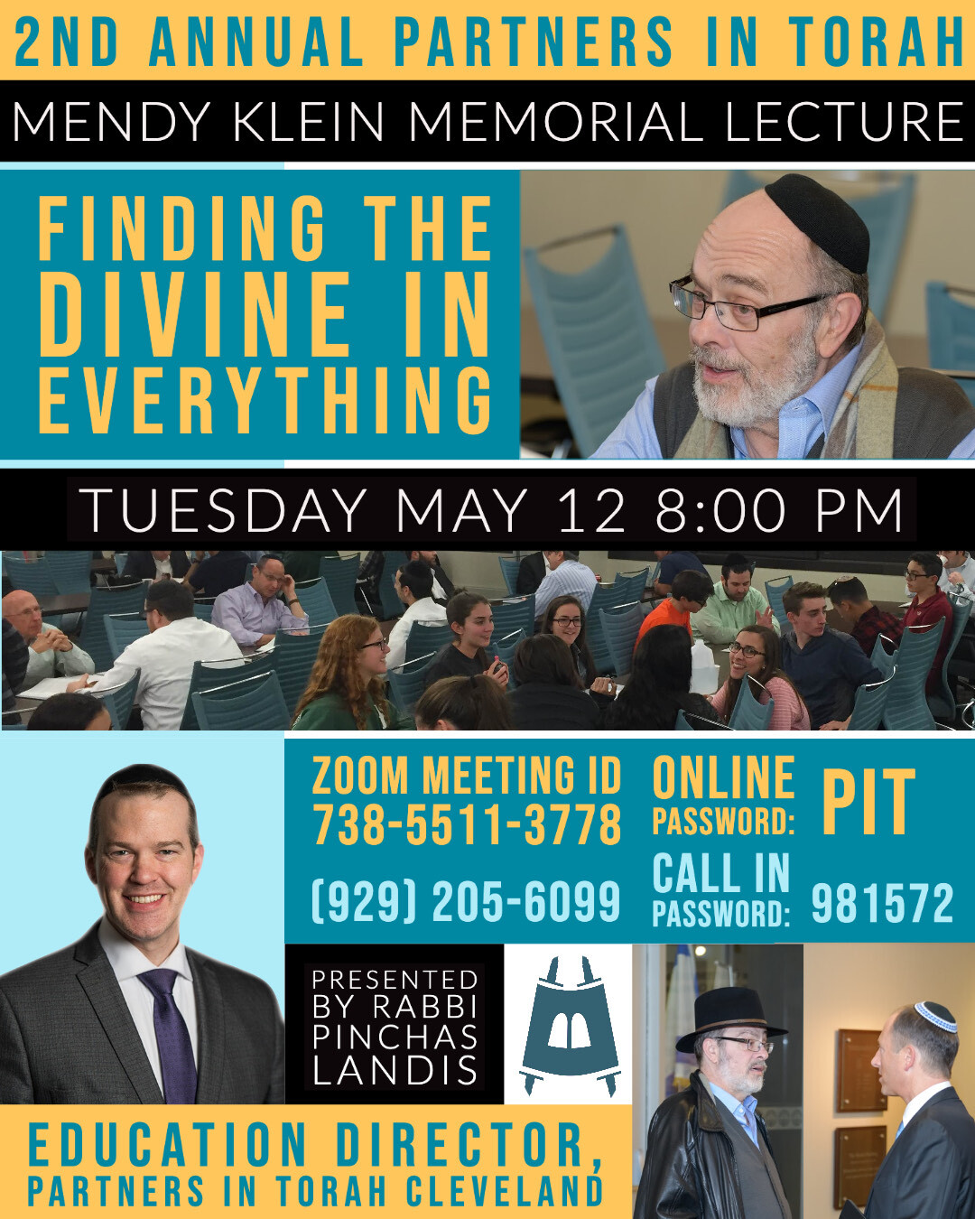 2nd Annual Partners In Torah Mendy Klein Memorial Lecture – Finding The Divine In Everything