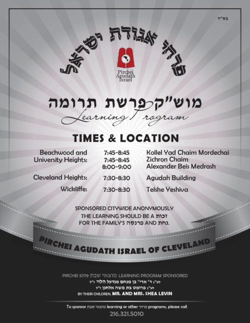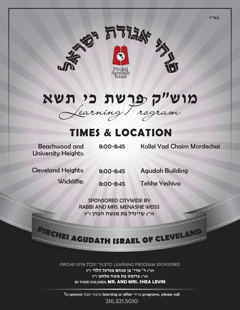 Pirchei Motzei Shabbos Parshas Ki Sisa