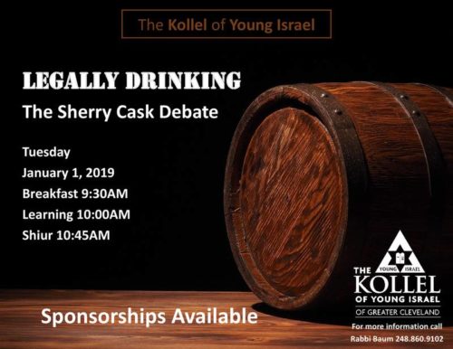 New Year’s Day Learning Program at The Kollel of Young Israel – “Drinking Legally; The Sherry Cask Debate”