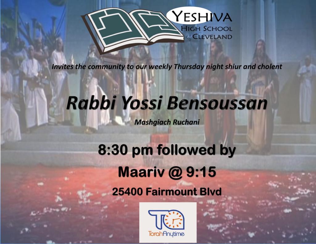 Yeshiva High School Weekly Thursday Night Shiur with Rabbi Yossi Bensoussan