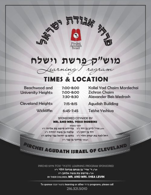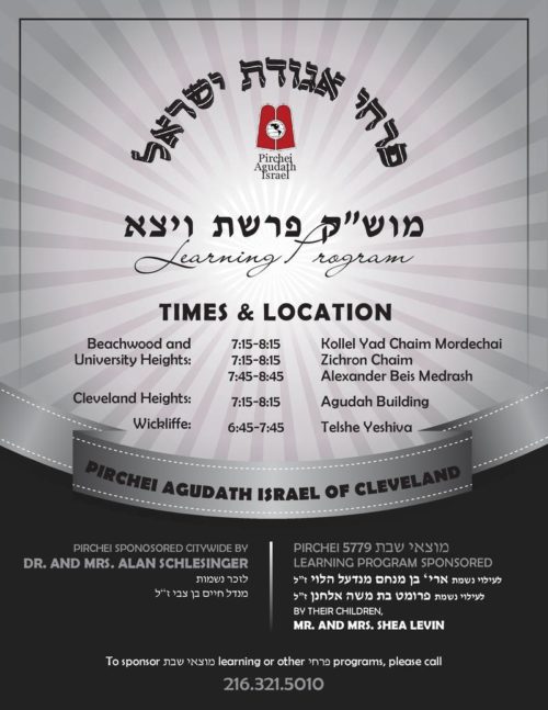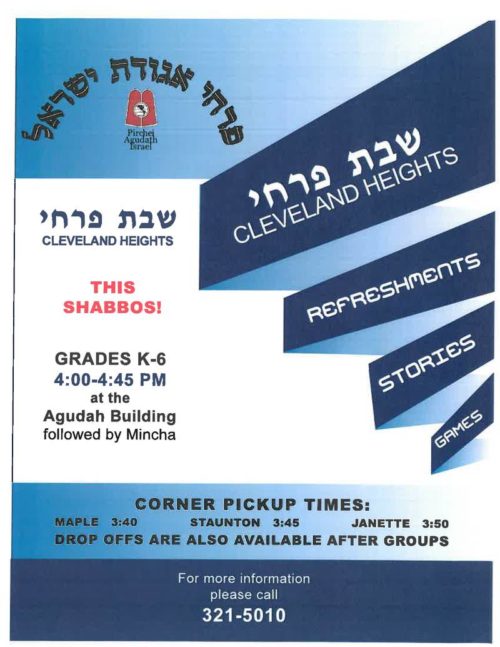 This Friday night Heights Jewish Center will commence our Friday night learning series during the Fall and Winter season with Rabbi Davidovich. The 1st oneg will be at the home of Yisroel and Sherri Mendenhall at 4292 University Parkway (near the corner of Elmdale), starting at 8:00 pm. We hope that this will enhance your Shabbos evening as Rabbi Davidovich will share insights into the weekly Parsha. Please contact Heights Jewish Center at 216-382-1958 with any questions.