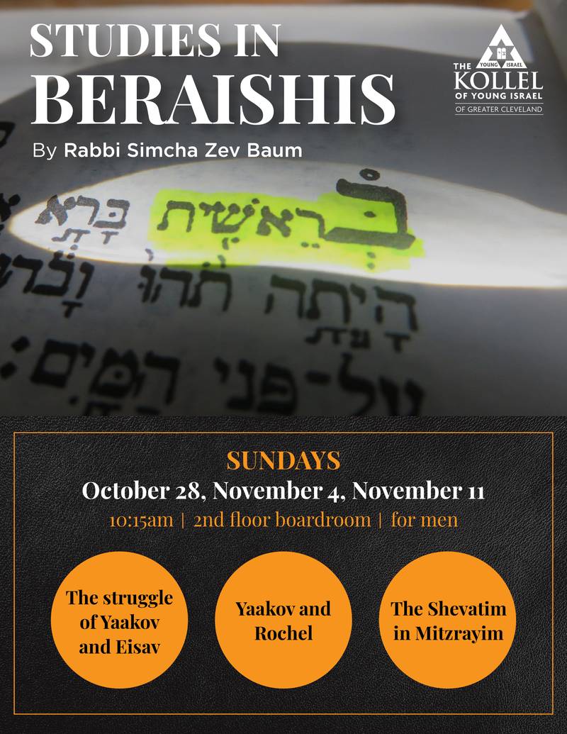 Studies in Beraishis, Sundays, With Rabbi Simcha Zev Baum at YIGC Kollel