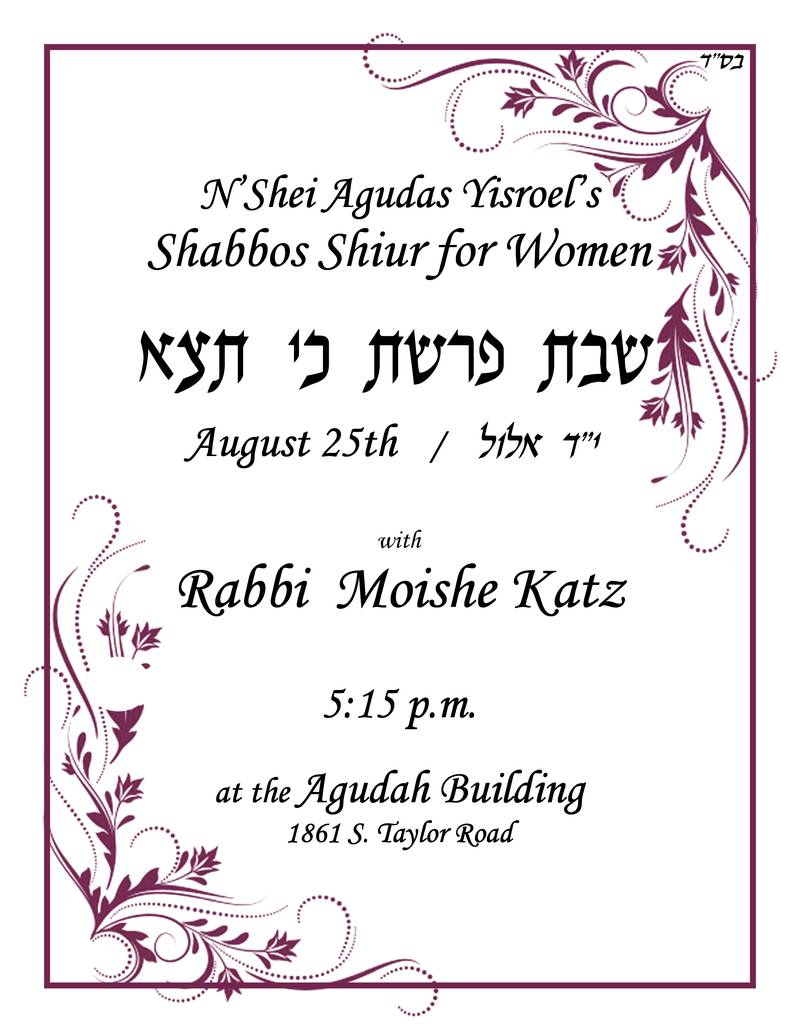 Nshei Shiur Parshas Ki Setzei