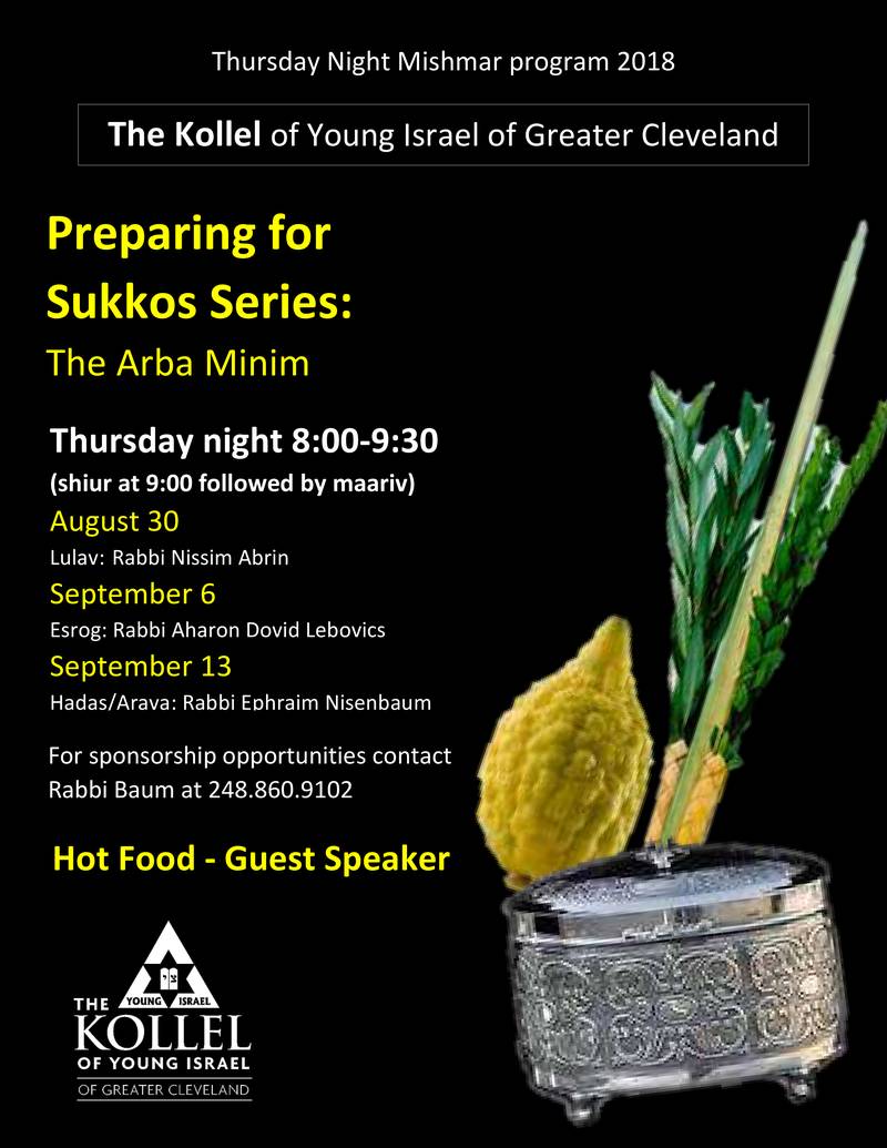 The Kollel of YIGC Presents “Preparing for Sukkos” – Starting Thursday 8/30