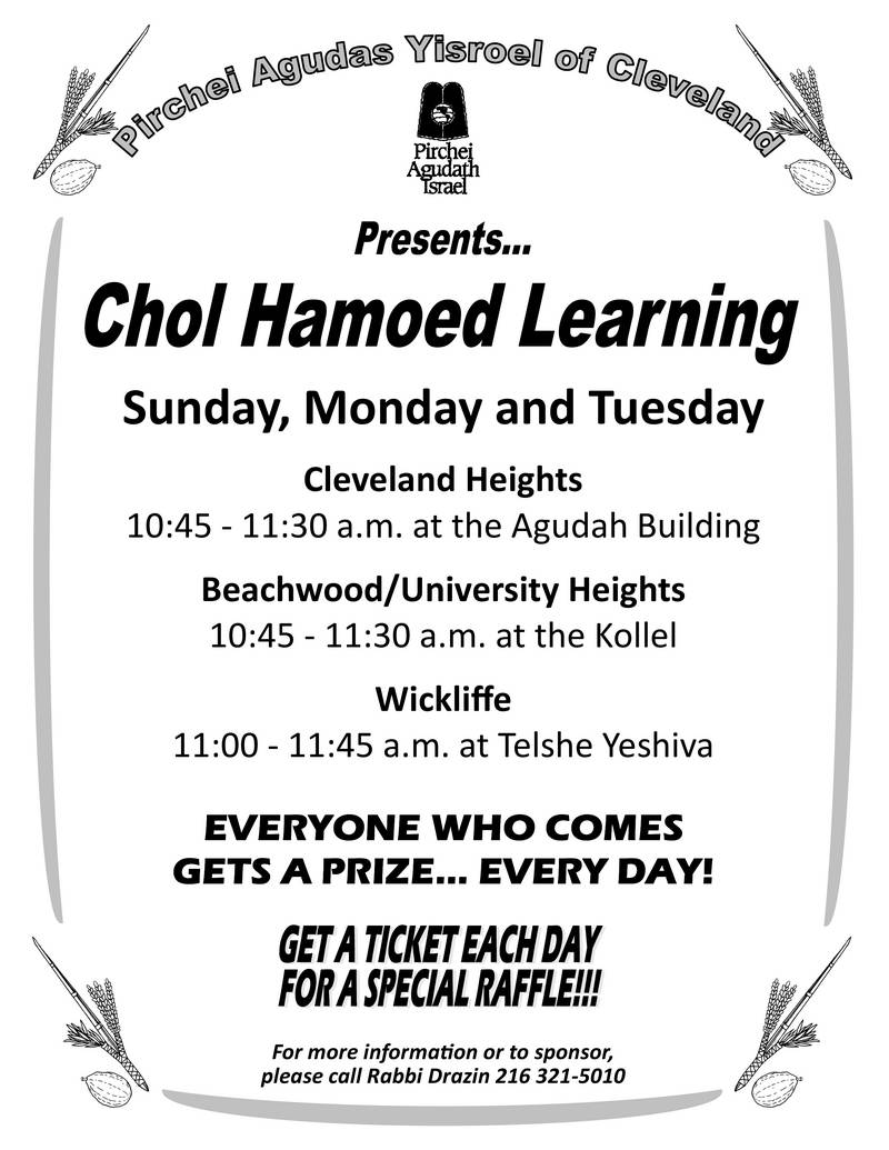 Pirchei Chol Hamoed Learning – Sunday, Monday, and Tuesday