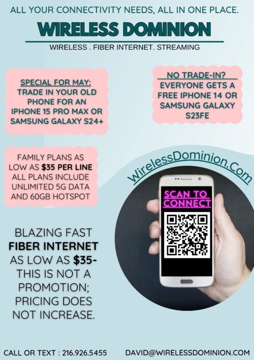 We are thrilled to announce the opening of our local office, staffed by a team with 20 years of experience in the industry. As a master agent for wireless phone, fiber internet, and streaming entertainment services, Wireless Dominion is here to meet all your connectivity needs. Why Choose Wireless Dominion? -Exclusive Access: Benefit from top-tier service plans and private deals unavailable to the general public. -Tailored Solutions: Our specialty is analyzing your current plans and offering personalized options that work...