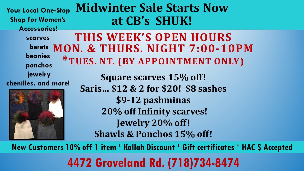 Midwinter Sale Starts Now at CB’s Shuk!!