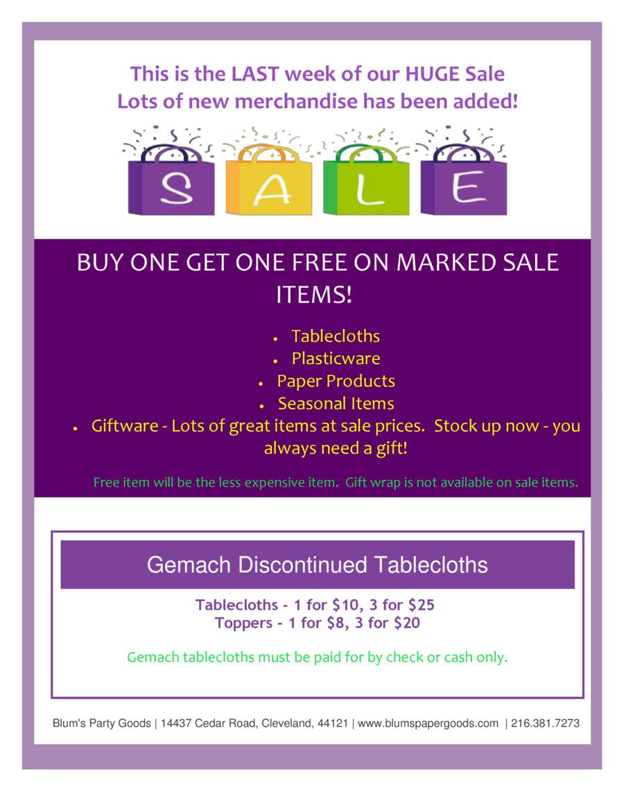 Blum’s Party Goods – LAST WEEK of our HUGE SALE