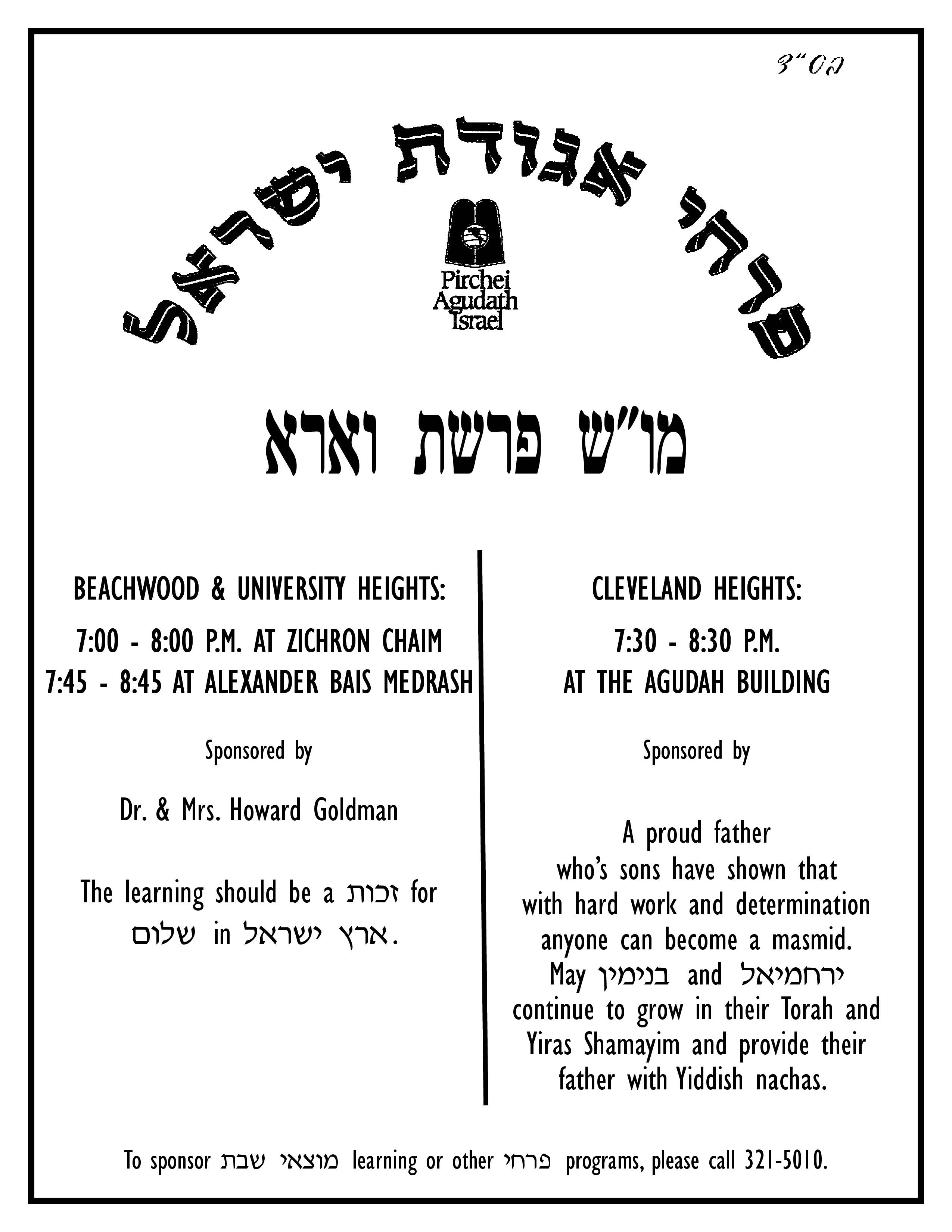 Agudath Israel Pirchei Motzei Shabbos Vayera 5776