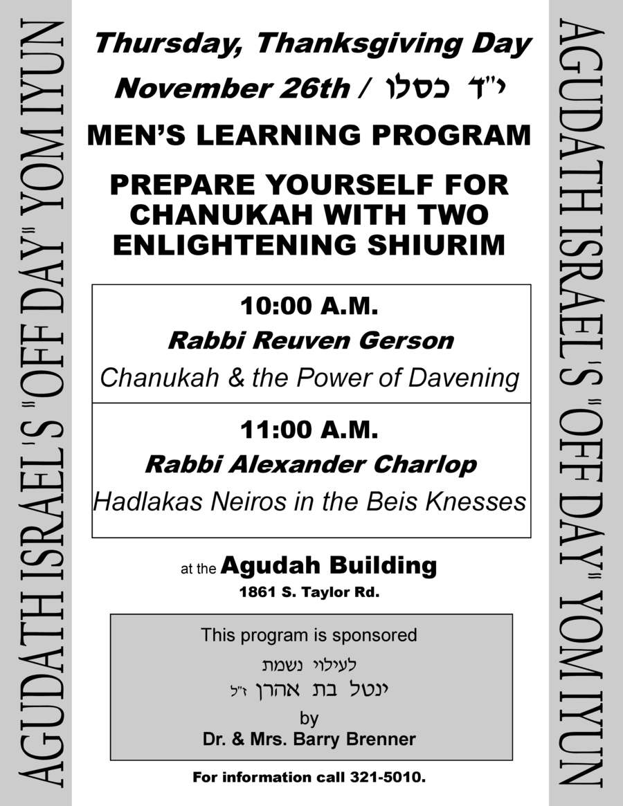 Agudath Israel “Off Day” Yom Iyun – Thanksgiving Day