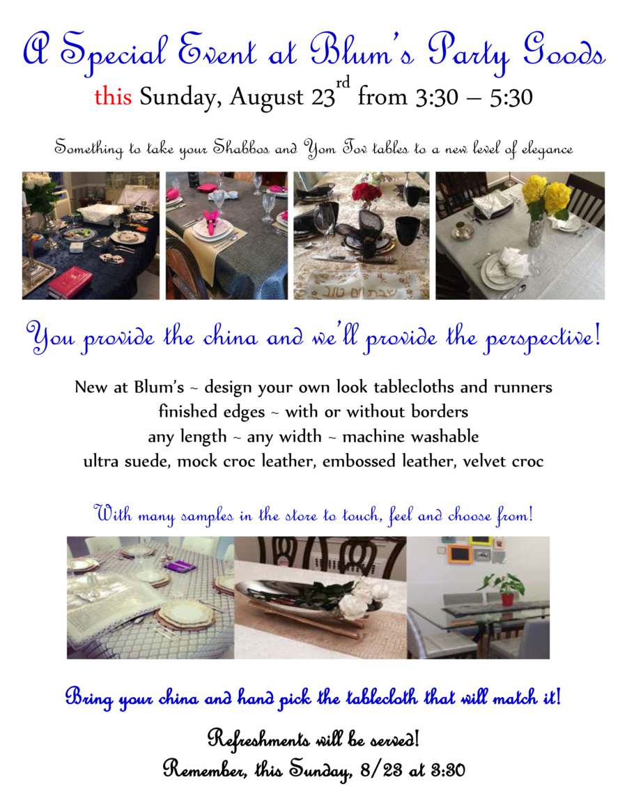 A Special Event at Blum’s Party Goods – THIS SUNDAY