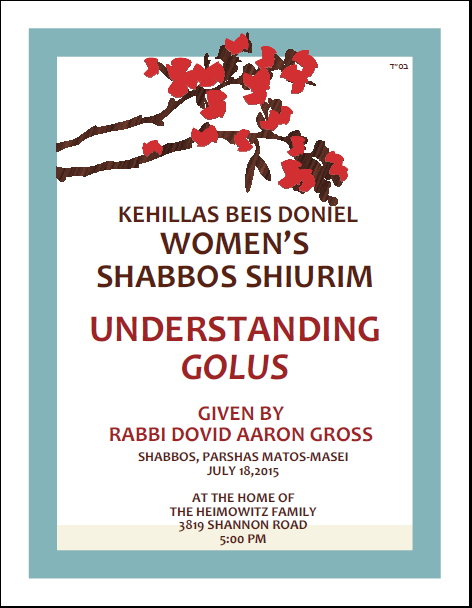 Kehillas Beis Doniel Women’s Shabbos Shiurim