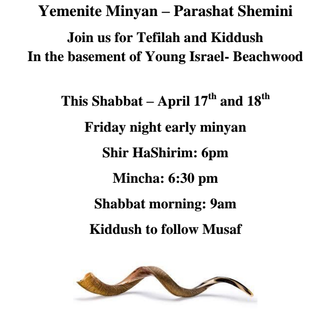 Rabbi Burnstein will be starting his summer Shabbos afternoon 5:30 pm series this Shabbos, 4/18/15. The title of the first series is “Laws of Bishul on Shabbos” and is in memory of the children killed in the fire in Brooklyn. Mincha will follow at 6:15 pm.