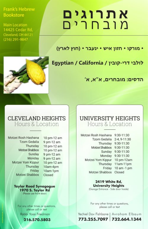 For questions please contact Rabbi Chaim Feld 216-321-7277 ext 22 or Whatsapp 216-470-4081.