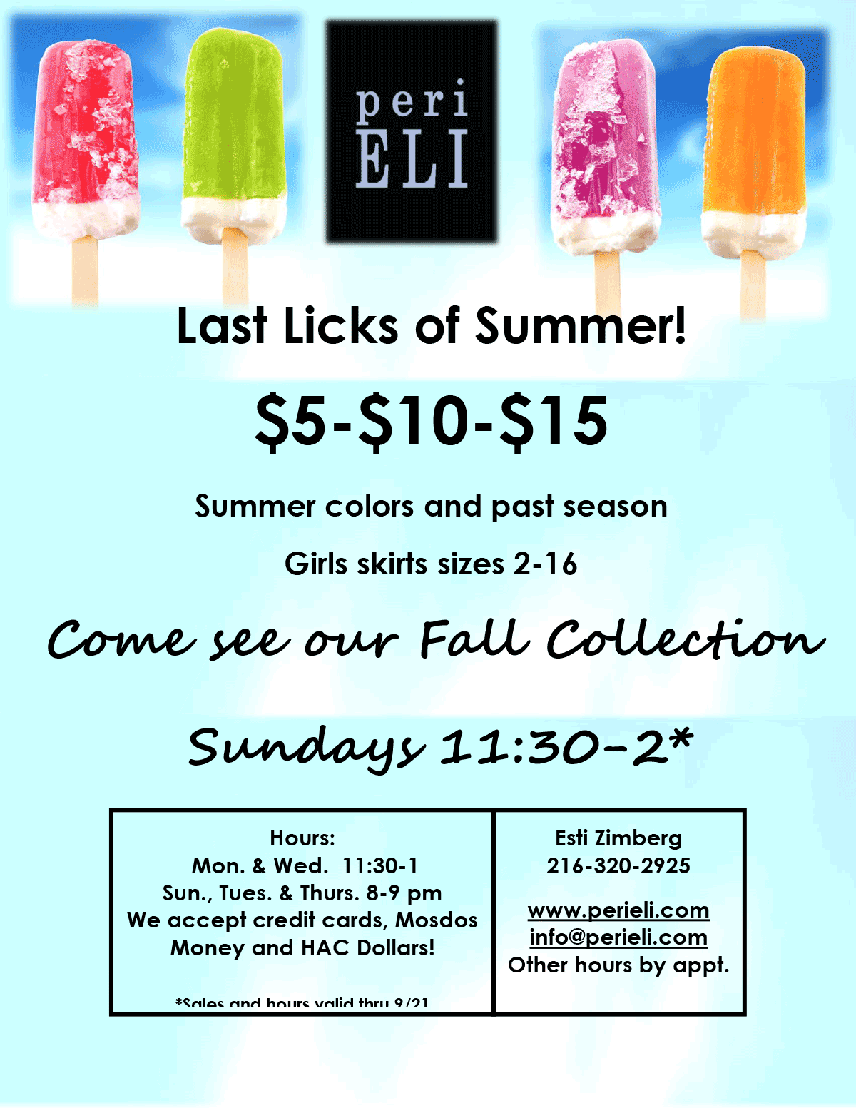 peri ELI Last Licks of Summer! Come see our Fall Collection