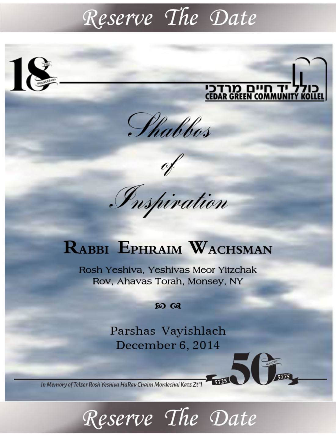 Cedar-Green Kollel Shabbos of Inspiration – SAVE THE DATE