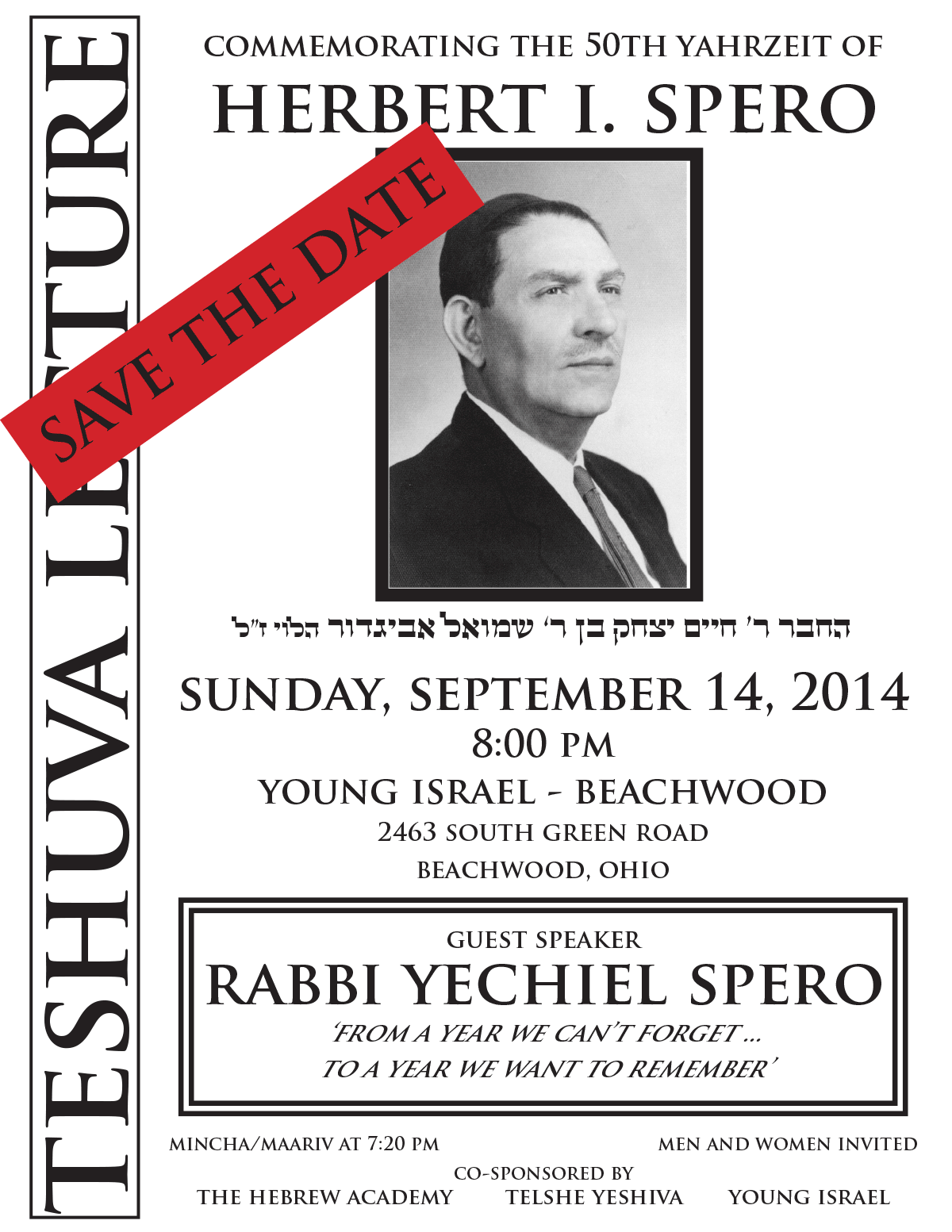 Teshuva Lecture – 50th Yahrtzeit of Hebert I Spero, z”l