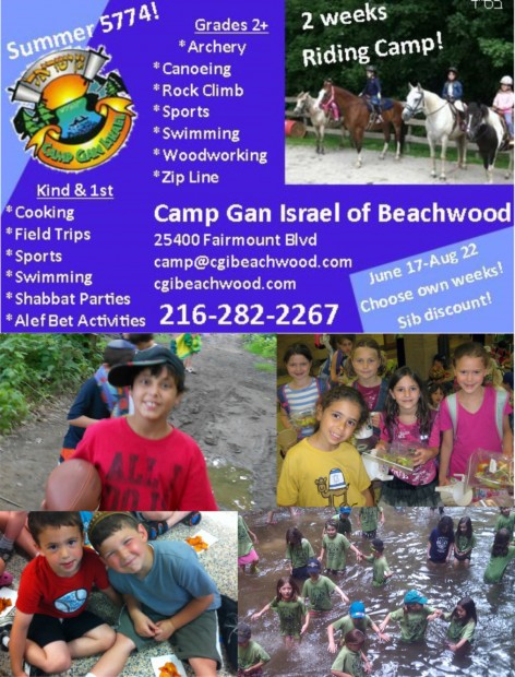 Camp Chabad is pleased to announce The Summer of 2014 – 5774. June 23 – Aug. 15. Monday thru Friday, 9:30 AM til 3:30 PM. A limited amount of partial scholarships are available to qualifying participants. Please contact Jill Weiszner for available Job Opportunities @ Jiris770@aol.com or text 216 402 4877. Click here to download a sign-up form>>