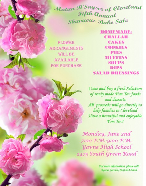Matan B’Sayser of Cleveland 5th Annual Shavuos Bake Sale