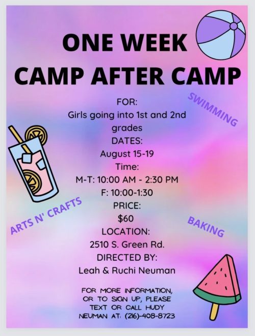 Camp After Camp! For Girls Going into 1st and 2nd Grades!