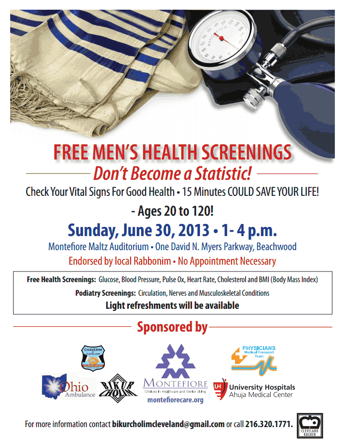 Bikur Cholim – Montefiore Men’s Health Screenings Event This Sunday