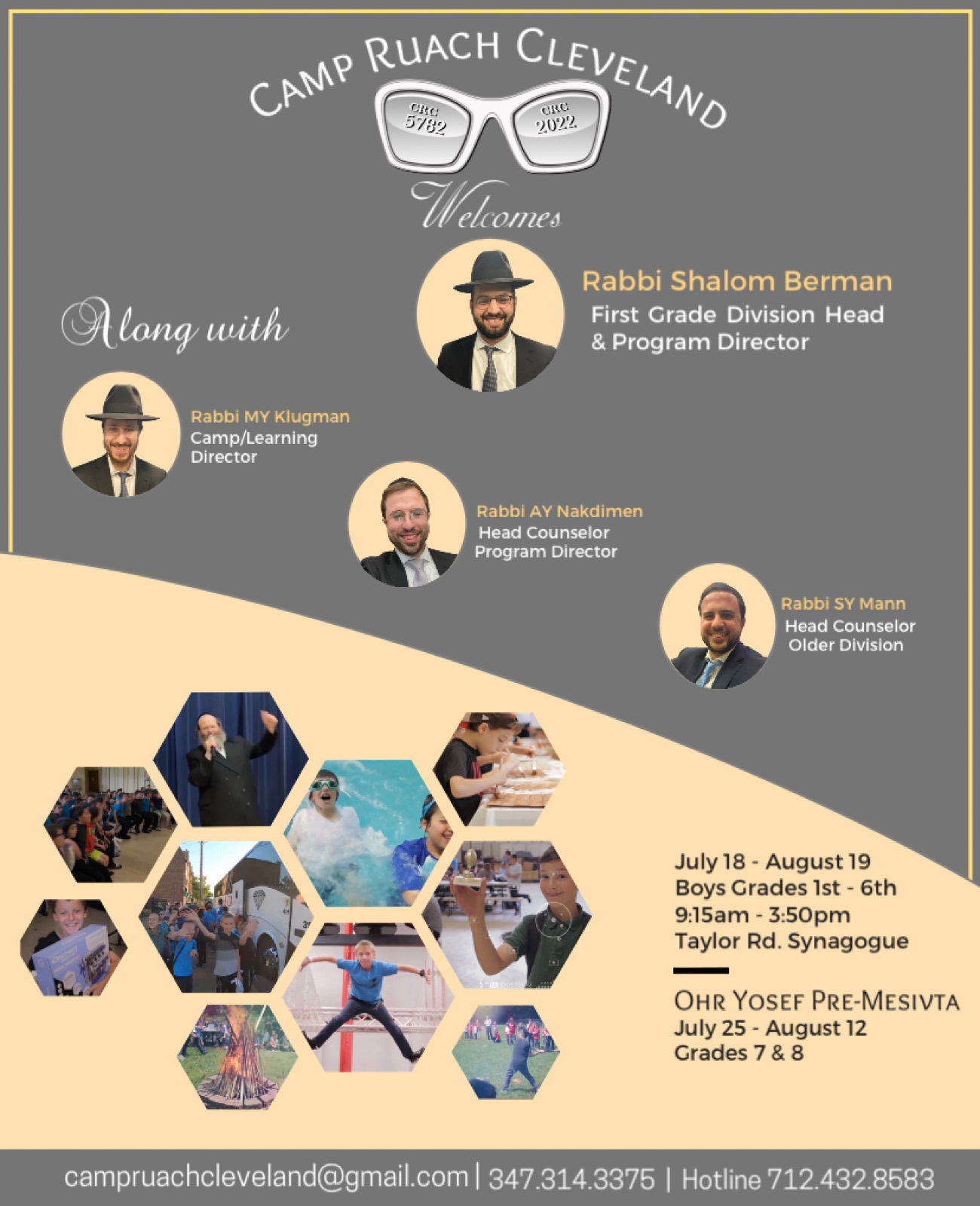 For more info please call Mrs. Sheindl Chaikin at 216-381-0443.