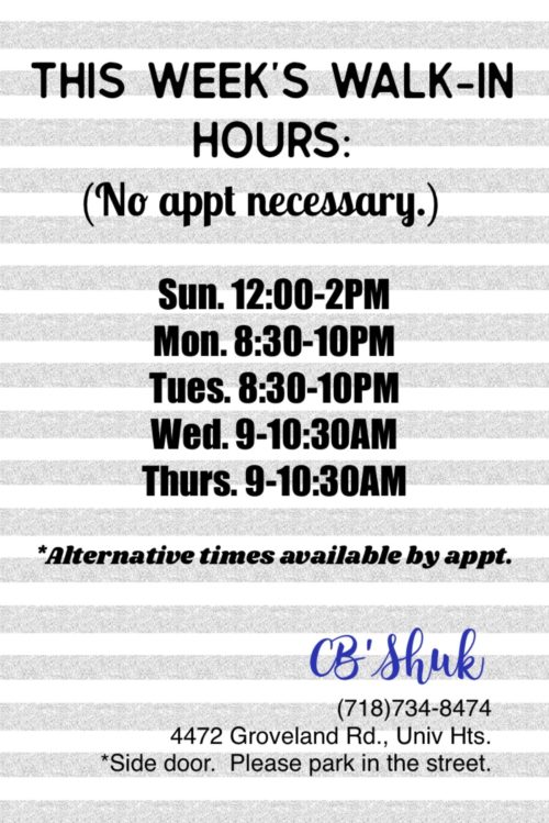 CB’s Shuk Walk-In Hours for this Week