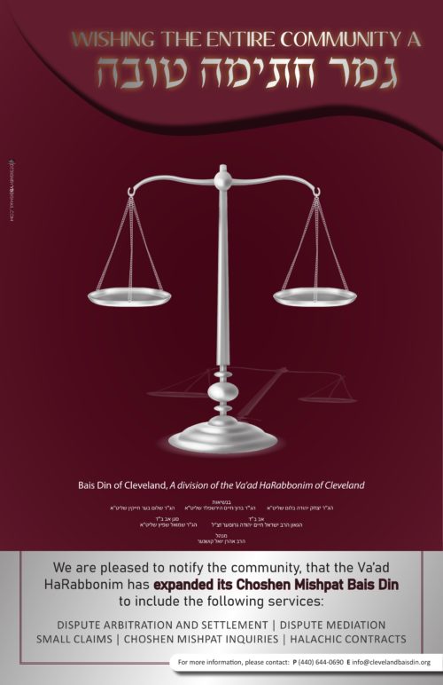 Friday- Motzei Shabbos- Sunday -Monday. Please call for an appointment: 216-373-4484.
