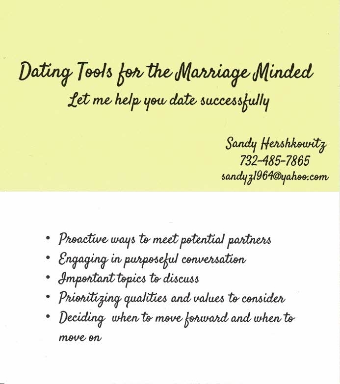 Contact Sandy Hershkowitz (local) at 732-485-7865 or sandyz1964@yahoo.com.