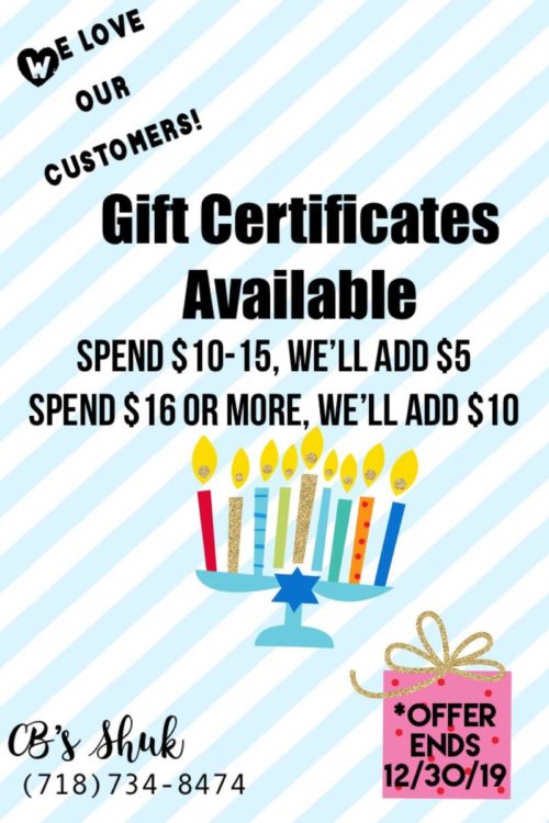 Get Your Chanukah Gift Cards at Head Shoulders Toes and Bows