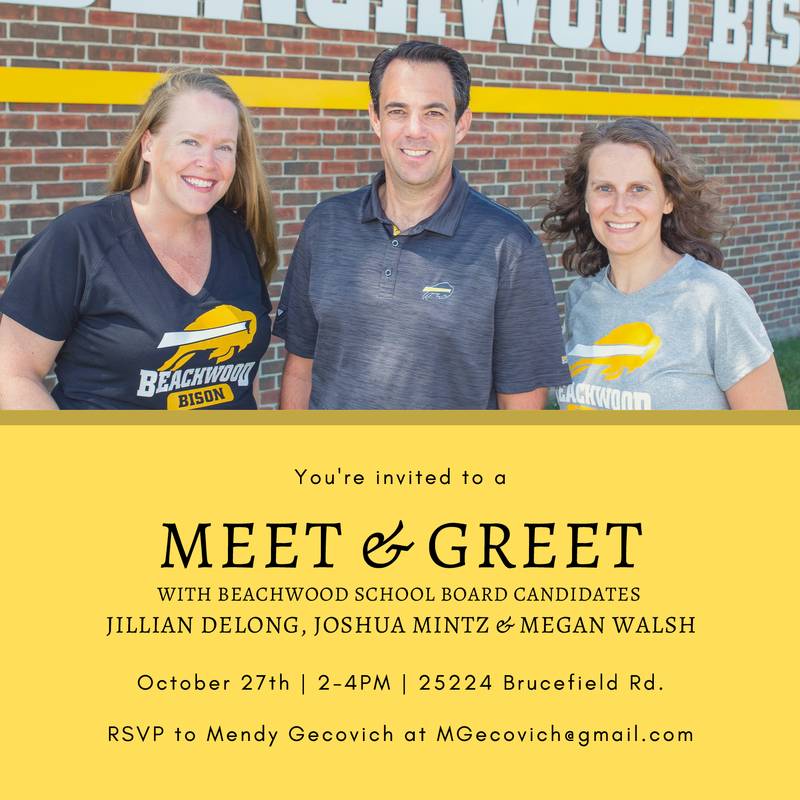 Ad: Sunday Meet and Greet with Beachwood School Board Candidates Delong, Mintz, and Walsh