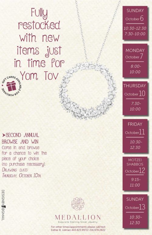 Rozita’s Boutique Pre-Yom Tov and Chol Hamoed Hours
