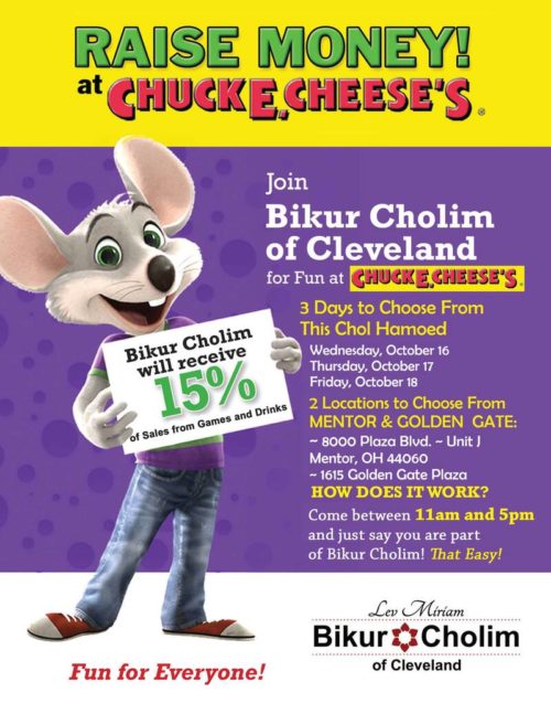 Help Bikur Cholim Raise Money this Sukkos at Chuck E. Cheese’s!