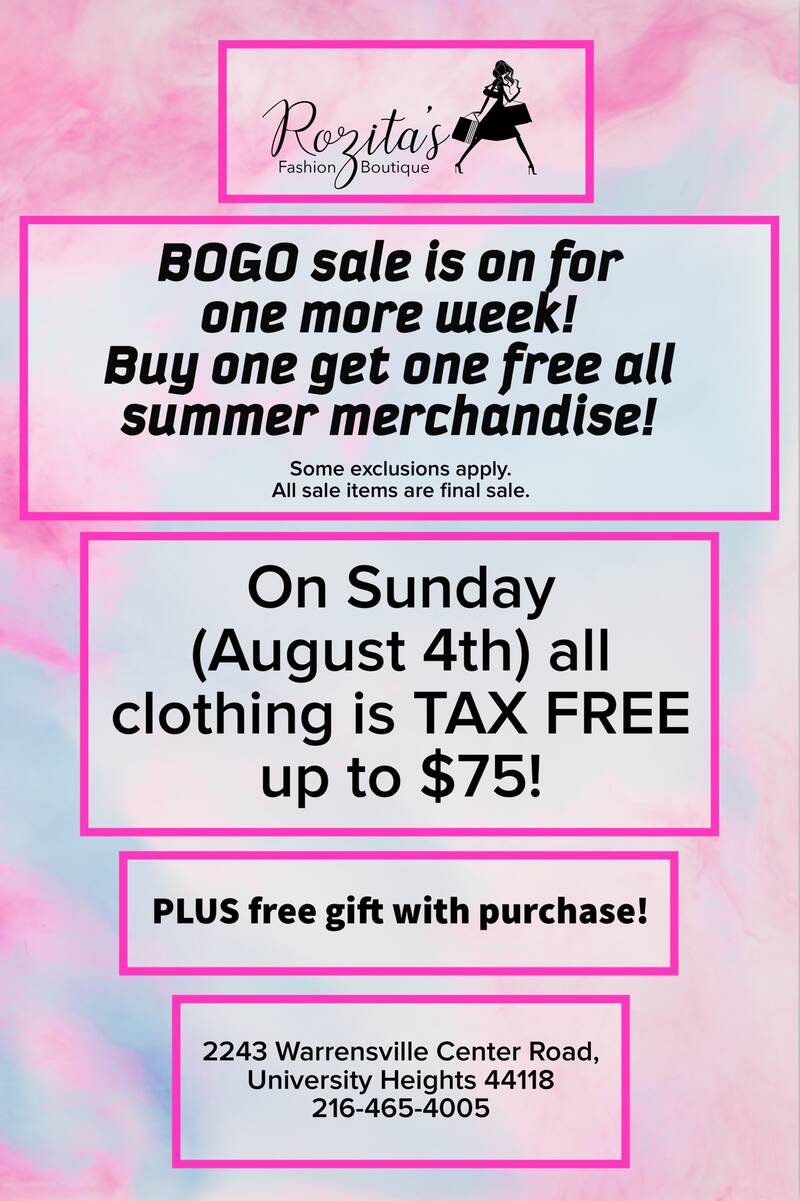 8pm, Tuesday, August 6, 2019 at Nisenbaum, 2362 Milton Road, University Heights, Ohio 44118.